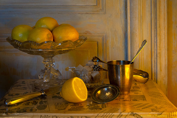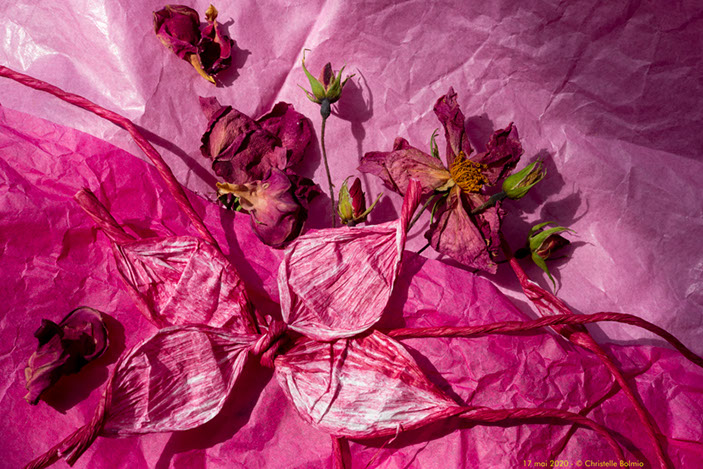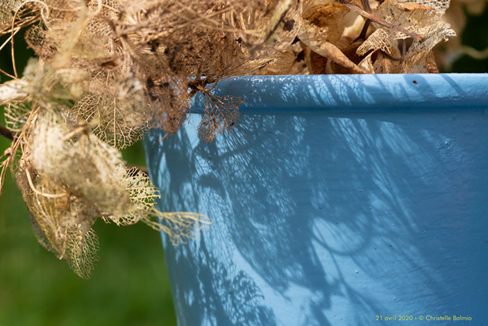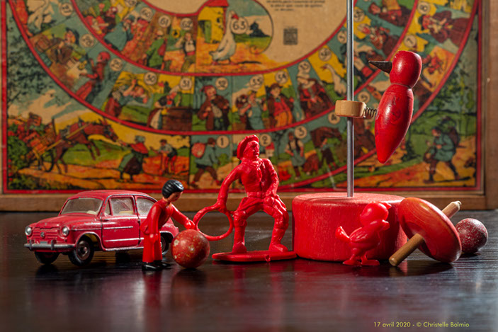 Fin de cette série « Une photo par jour », commencée au début du confinement, et où chaque photo a été réalisée le jour même, en promenade dans la limite du km autorisé ou en studio, à la maison ou dans le jardin, avec des objets anciens ou du quotidien.